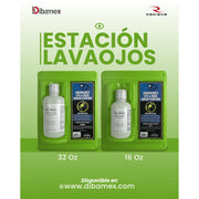 Lavaojos personal montado en la pared que se puede utilizar para enjuagar los ojos inmediatamente en caso de emergencia, hasta que se pueda ayudar a la persona lesionada a llegar a una estación de lavado de ojos adecuada. Botella de 32oz