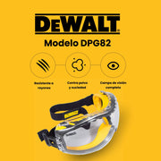 - El revestimiento de lentes antempaño DEWALT proporciona una protección resistente contra el empañamiento.