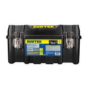 Caja portaherramientas SURTEK CPS17 organiza y protege tus equipos con plástico de alta resistencia, broches metálicos con porta candado y tapa antiderrapante que permite pararse sobre ella para mayor seguridad.