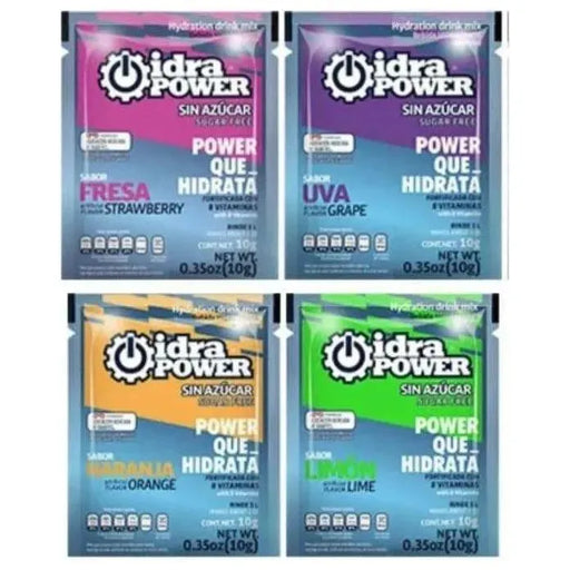 IdraPower – Hidratación científica y deliciosa Cada sobre de 10 gramos rinde 1 litro de una bebida sin azúcar, con sabores intensos y refrescantes:...